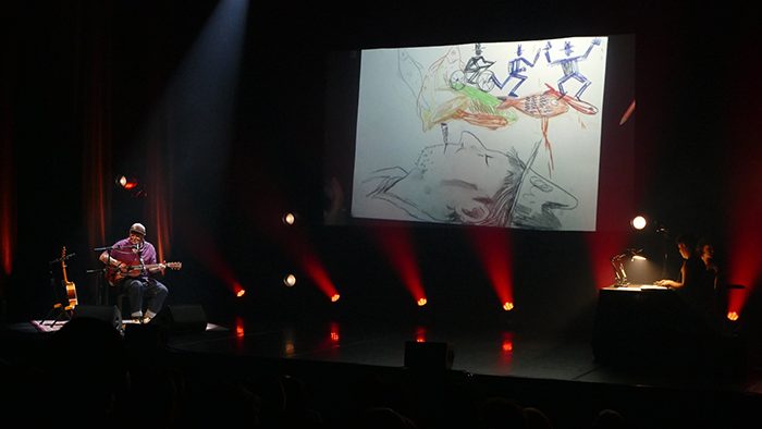 ce clip a été présenté au public avant le concert dessiné d’Alexis HK.