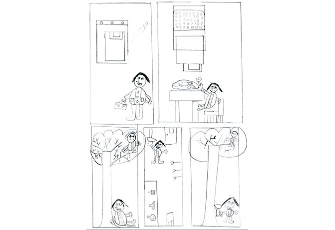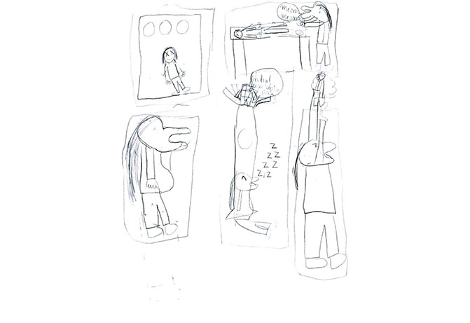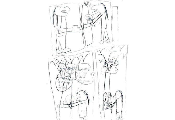 les spectateurs à leur raconter l’histoire contée par Monia Lyorit, afin de réaliser des dessins.